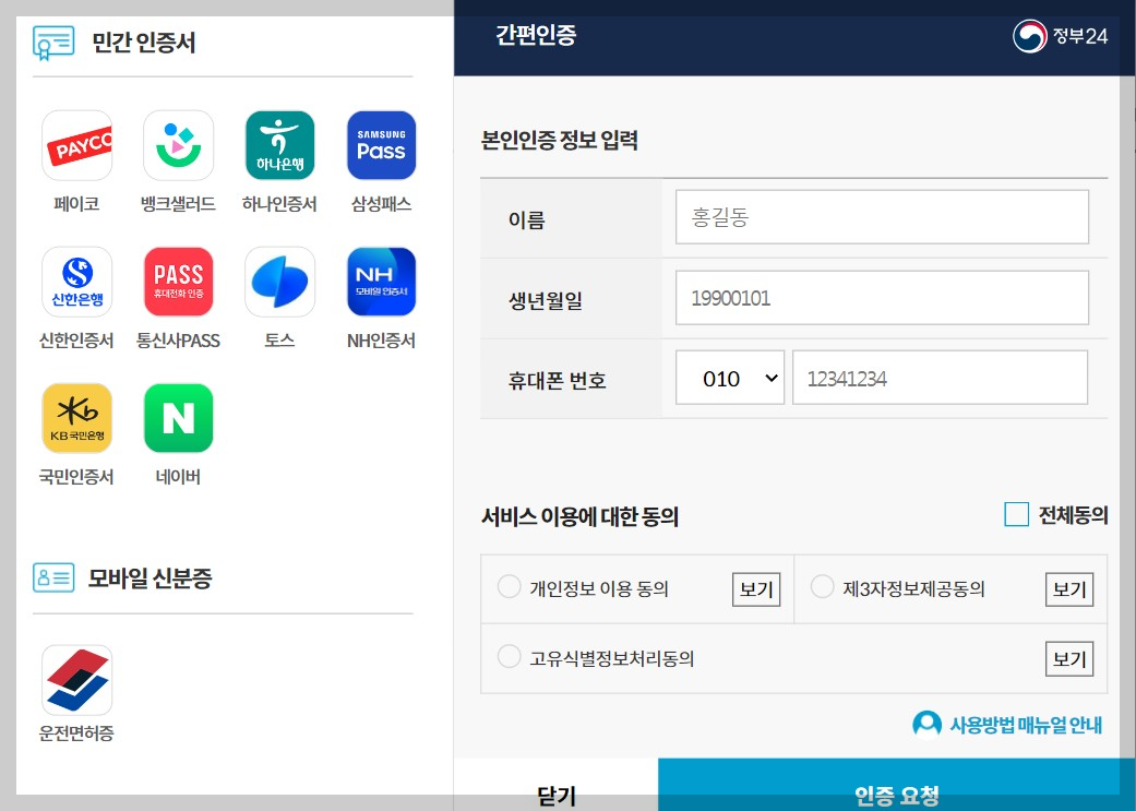 2) 주민등록등본 인터넷 발급 : 회원 / 비회원 간편 인증하기