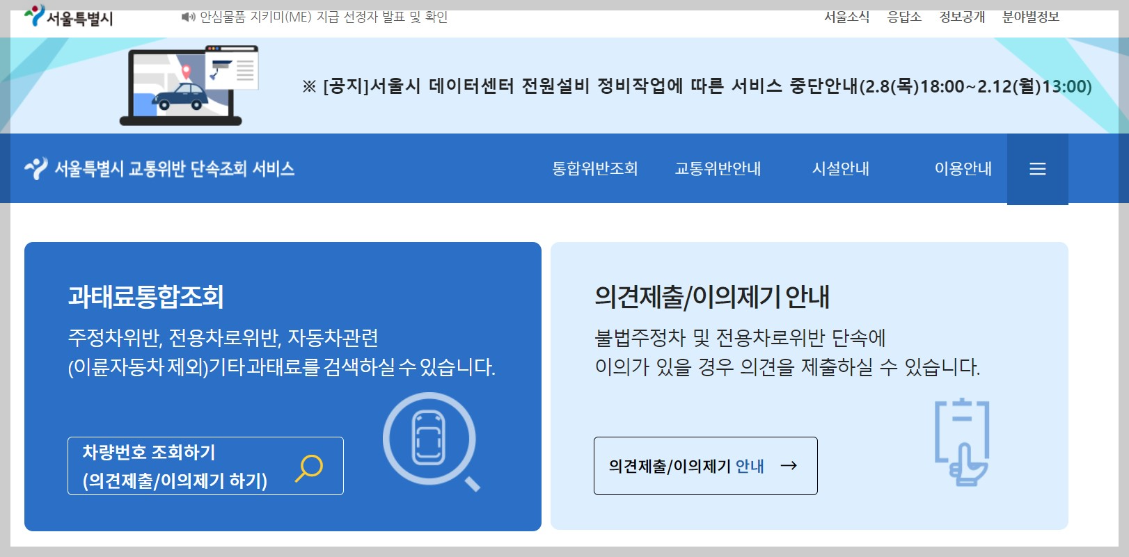 - 카텍스(서울)에서 주정차 위반 과태료 조회하기